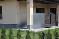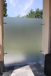 Sicht- und Windschutz aus Satinato ESG und Edelstahlpunkthalter